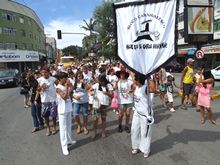 desfilando pela reta e retornando ao Parque Regadas, o grupo jogou confete,