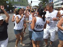 Rio Som, os foliões com a camisa do bloco chamavam quem estava nas calçadas para